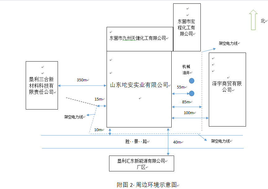 山東坨安實(shí)業(yè)有限公司非危化品油品存儲(chǔ)項(xiàng)目位于東營(yíng)市墾利區(qū)勝坨鎮(zhèn),本項(xiàng)目總占地面積33944.1m2(約50.91畝)。廠區(qū)東側(cè)為澤宇商貿(mào)有限公司(石油化工企業(yè)),南側(cè)為勝景路,路對(duì)面為墾利匯東新能源有限公司(石油化工企業(yè)),西側(cè)為墾利三合新材料科技有限責(zé)任公司(石油化工企業(yè)),北側(cè)為東營(yíng)市九州天健化工有限公司(精細(xì)化工企業(yè)),東北側(cè)為東營(yíng)市宏程化工有限公司(石油化工企業(yè))。 |