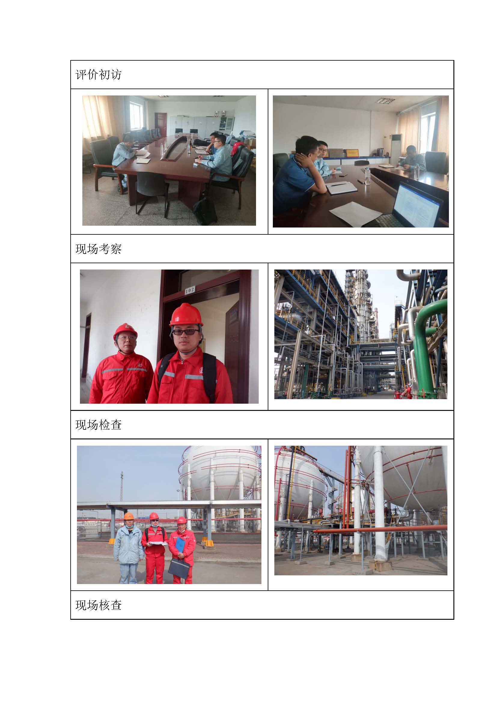到現場開展安全評價工作的人員名單、時間和主要任務 |